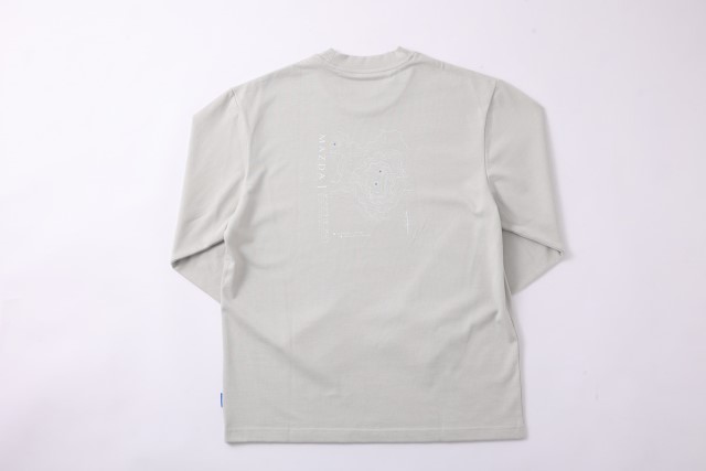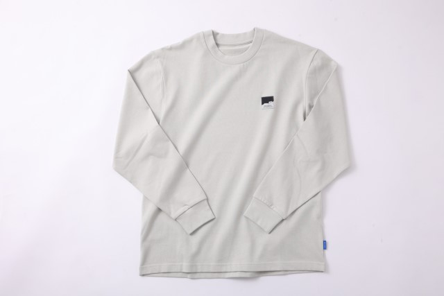 シンプルなデザインにアウトドアをテーマにしたロゴデザインをあしらったロングTシャツ。鮮やかなブルーのタグがアクセントとなり、スタイリッシュな印象となっています。